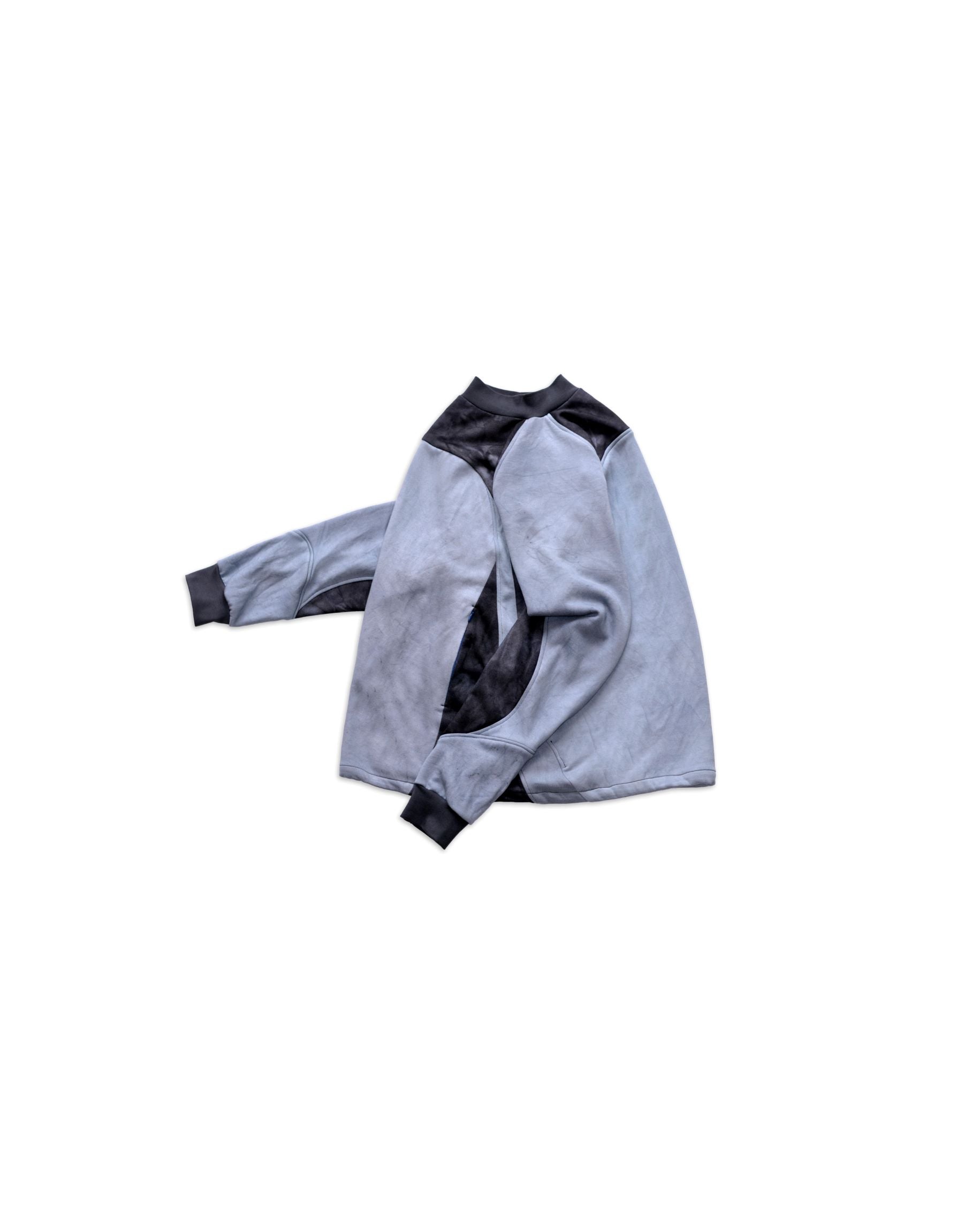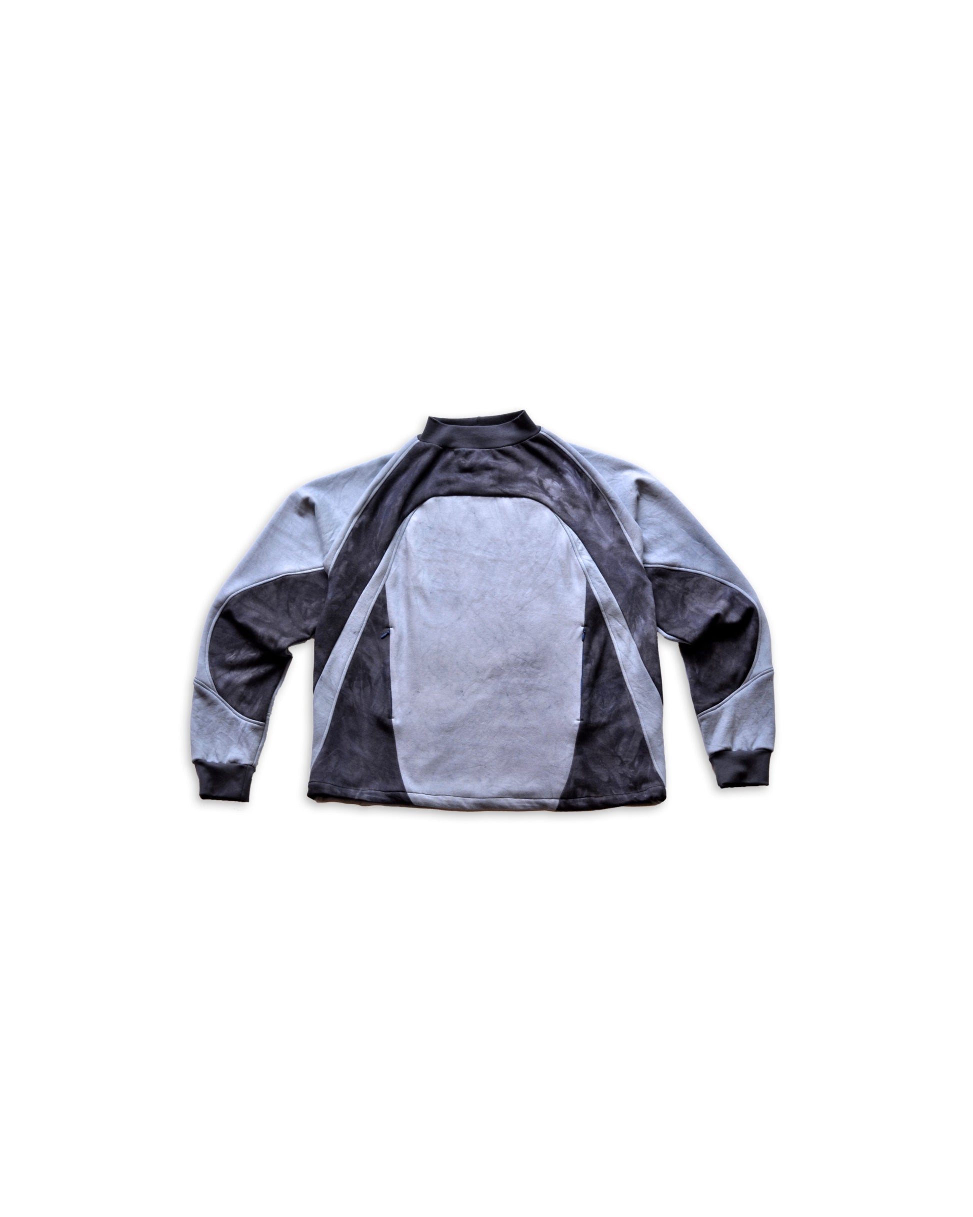 A slouchy sweater with ergonomic design lines and hand-dyed contrast panelling. Made to keep the nippy summer breeze at bay.